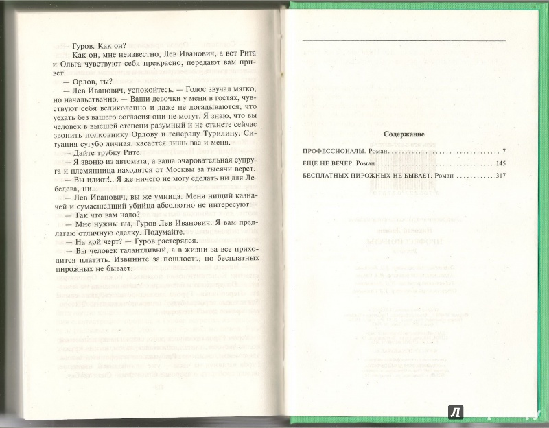 В книгу вошли три повести: "Профессионалы", "Еще не вечер", "Бесплатных пирожных не бывает". Все они объединены одним героем - сотрудником уголовного розыска Львом Гуровым, человеком сильным и талантливым. На страницах произведений Н. Леонова - вся его жизнь, полная тревог, напряженных поисков, разд