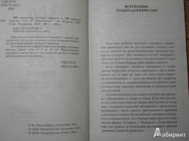 Книга не понравилась ни качеством содержания ни качеством исполнения. Как показывает практика ребенок задает более мудрые вопросы и более каверзные, чем "почему говорят, что лев царь зверей?" или "кто был раньше, бог или динозавры?". Темы затронуты разнообразные от анатомии человека до устройства к...