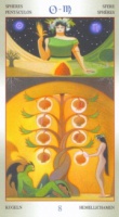 Система Таро Тота, старшие арканы полностью совпадают с классикой, младшие кроме классического изображения имеют дополнительные, из которых можно вытащить смысл.