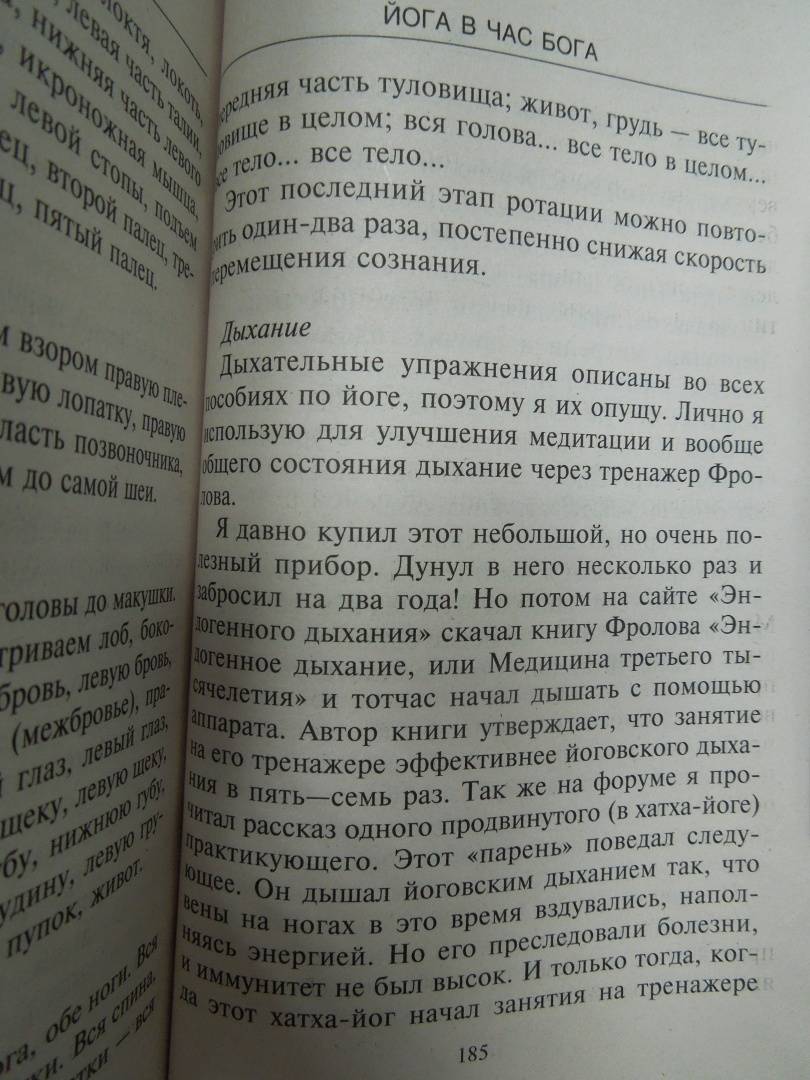 То, что написано в аннотации не совсем об этой книге. О самой йоге там маловато, а где и есть, то очень зауныло и тяжело читается. Хотя она в целом читается тяжело, присутствуют разные отступления в тексте, легенды. Начало еще ничего, но потом приходилось пролистывать по десятку страниц, проглядывая их «по диагонали...