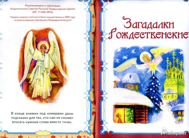 В этой красочной книге собраны загадалки рождественские, крещенские и пасхальные. В конце книги под номерами даны подсказки для тех, кто сам не сможет вписать нужные слова вместо точек.