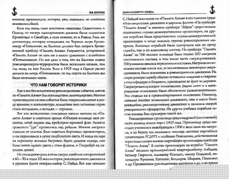 Книга известного писателя и журналиста капитана 1-го ранга В. Шигина рассказывает о двух трагических эпизодах в летописи Балтийского флота - загадочном мятеже в 1906 г. на любимом крейсере императора Николая II "Память Азова" и сдаче англичанам в 1918 г. двух новейших эскадренных миноносцев "Спартак" и "Автроил". Если бы не скорое и жестокое подавление - мятеж на крейсере должен был стать началом в серии восстаний на оставшихся после Порт-Артура и Цусимы кораблях Балтийского флота. Случай сдачи двух русских кораблей, практически без боя, в истории Советского военно-морского флота больше не повторился.