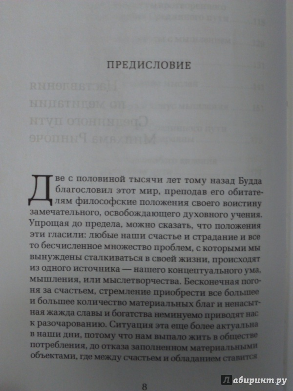 Автор приводит описание медитативных техник, направленных на развитие сочувствия, и объясняет, каким образом расширить это стояние ума, превратив его в просветленный настрой Бодхичитты. Цель - обрести ясность сознания, необходимую для проявления в нем праджни, или мудрости.
