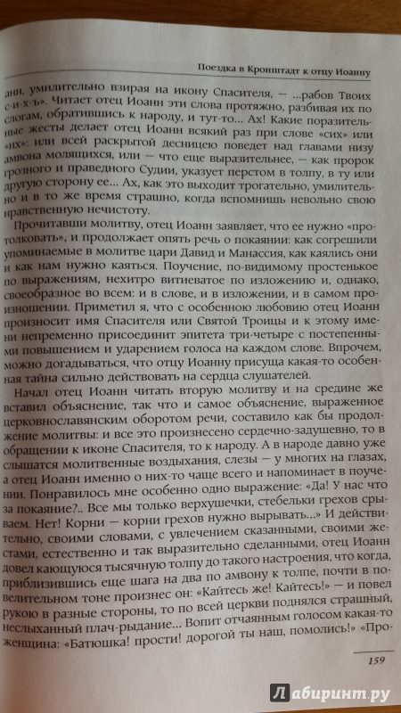Книга для тех, кого интересуют не только биография и труды Иоанна Кронштадтского. В этой книге живые воспоминания очевидцев, впечатления их от общения со Святым человеком. Сама книга качественная, бумага белая, шрифт крупный, много фотографий. Будет очень хороша также в качестве подарка.