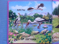 Книжка понравилась. Дочка в годик не особо заинтересовалась, но иногда смотрим животных. Текста нет вообще, только картинки. Удобный формат, берем с собой в поликлинику, старшей даю задания найти животных, посчитать сколько птиц и тд. За эти деньги просто отлично. Странички картонные, плотные.