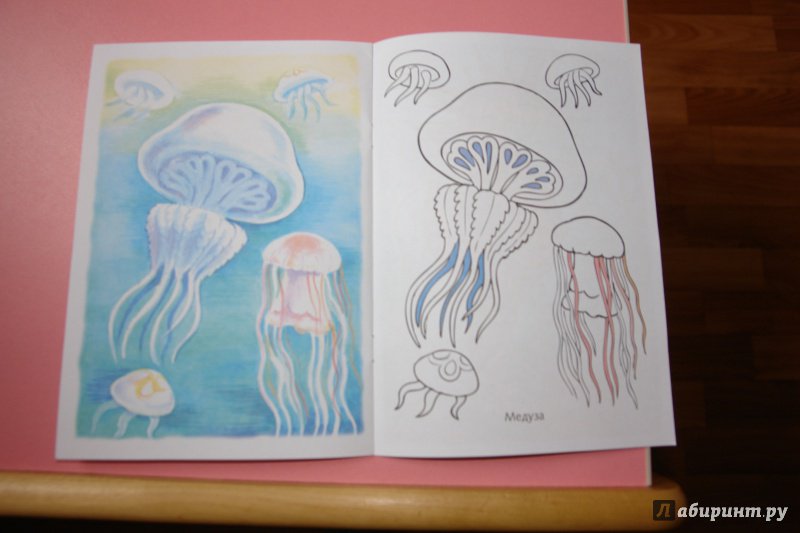 Единственный минус, на контрасте с раскрасками про птиц, отсутствует информационная составляющая. Подпись под фото гласит просто "медуза". В книге про перелетных п...