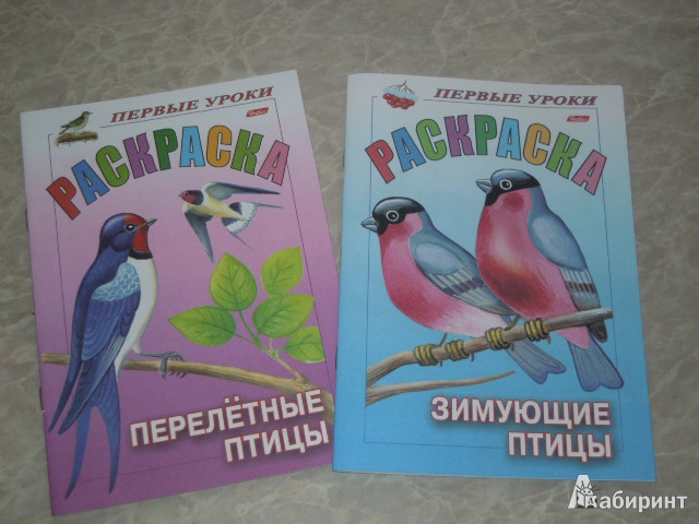 Прекрасные раскраски для дошкольников с чётким, крупным контуром и цветным образцом. С описанием интересных сведений о птицах. Фото прилагаю: