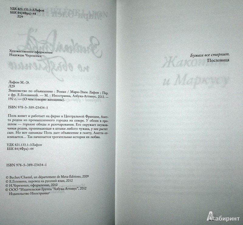 Мари-Элен Лафон быстро завоевала известность, любовь читателей и множество литературных наград. "Знакомство по объявлению" (2009) было номинировано на "Фемину", вошло в шорт-лист "Ренодо", получило призы "Страница книготорговцев", "Чернильные слова" и премию Маргариты Оду. Сейчас по роману снимается фильм с Изабель Карре и Эриком Каравака в главных ролях.
