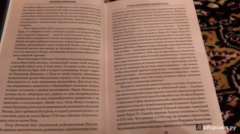 Эта книга и вышедшая в ЖЗЛ книга Анисимова "Иван VI Антонович" на самом деле это ОДНА И ТАЖЕ книга в разных издательствах и под разными названиями. Так что не стоит брать обе и если у вас уже есть одна из них, другая будет явно лишней. Надо отметить, что книга в серии ЖЗЛ по качеству полиграфии значительно л...