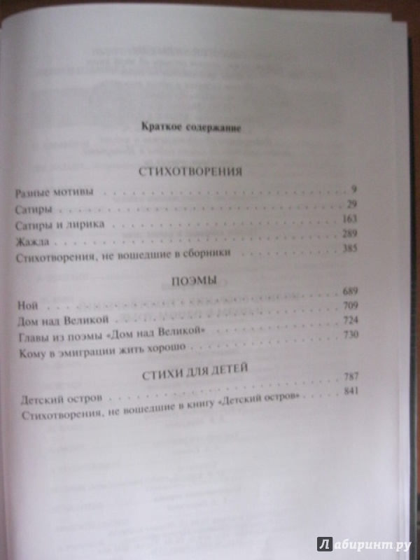 Классиков обсуждать бессмысленно : кому-то нравится, кому-то - нет. Добротное издание объёмом под тысячу страниц, разбитое на три части : стихотворения, поэмы, стихи для детей. В первой части : " Разные мотивы ", " Сатиры ", " Сатиры и лирика ", " Жажда ", " Стихотворения, ...