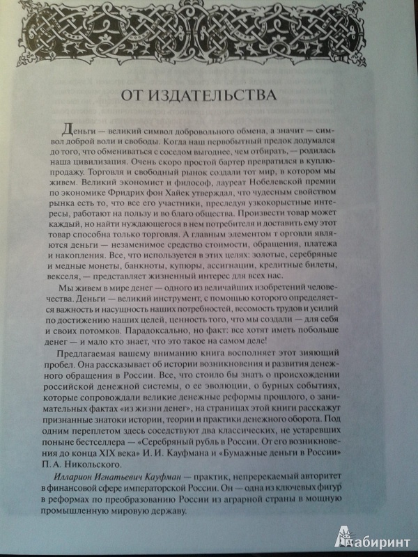 Под одним переплетом здесь соседствуют два классических, не устаревших поныне бестселлера - "Серебряный рубль в России. От его возникновения до конца XIX века" И. И. Кауфмана и "Бумажные деньги в России" П. А. Никольского.