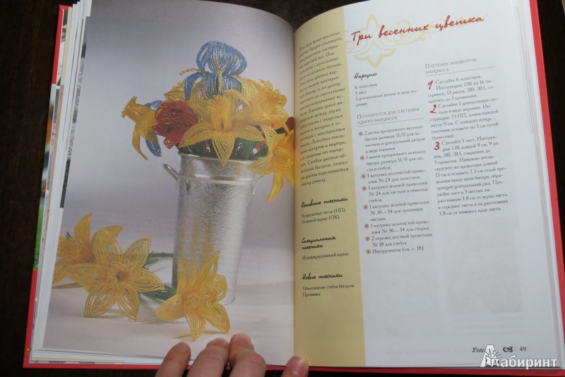 Не советую брать книгу начинающим рукодельницам. Во-первых- не совсем корректный перевод, во-вторых-очень много недосказанностей. Например, в схеме плетения листа герани 27 рядов из бисера, а то что они без прошивки долго не продержаться не сказано ни слова. Роза с натяжкой похожа на розу, ирисы тоже бывают получше. ...