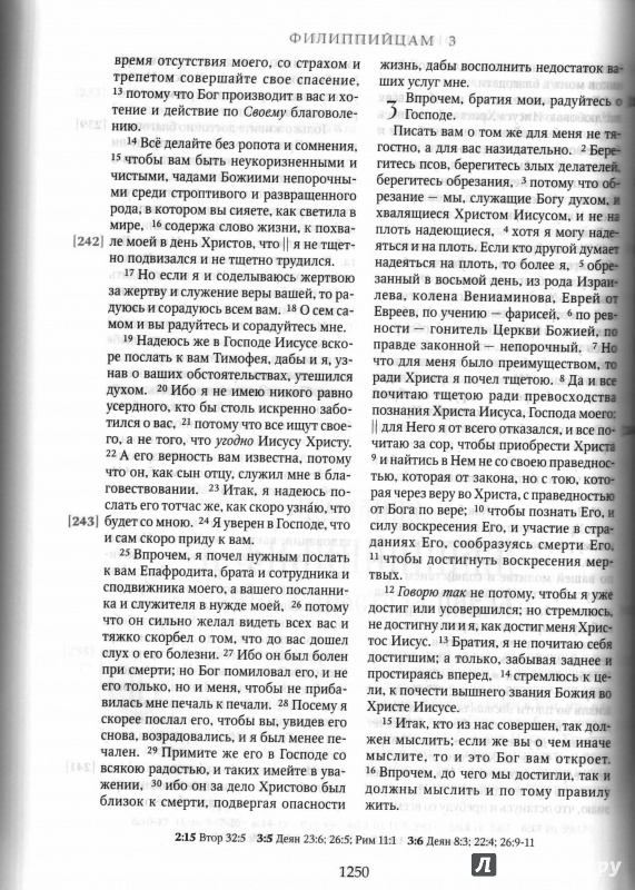 Подарочное издание в кожаном переплете на молнии. Обложка украшена золотым тиснением. Книга с трехсторонним золотым обрезом, индексами по обрезу для быстрого поиска библейских книг и шелковым ляссе. Напечатано на высококачественной рисовой бумаге.