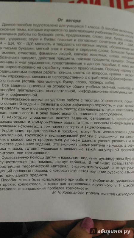 Текстовой материал упражнений, различный по жанру, обеспечивает не только формирование грамотности, но и обогащает словарь учащихся, расширяет их кругозор. Справочный аппарат (теоретические таблицы) содержит основные сведения по различным разделам русского языка, в том числе орфографии и пунктуации.