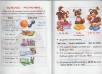 Начинается книжка с поговорки. Объясняется оборот there is/are, на него же даётся одно упражнение - описание картинок. Далее даётся тема "The Time" и также одно упражнение. Потом идёт "The Daily Routine", где учащемуся даётся возможность описать свой распорядок дня. "The School Timetable"...