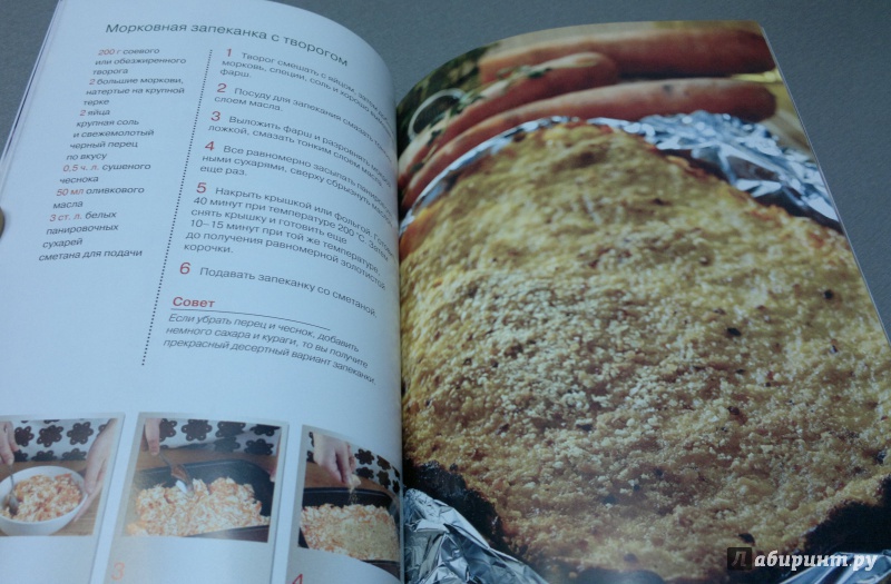 В книге много рецептов супов, запеканок, есть и рецепты сладостей. После перечисления ингредиентов и собственно рецепта есть пошаговые фотографии приготовления блюда. Серия называется "Вкусно, быстро, доступно" и действительно так и есть. Рецепты просты в приготовлении, четко написано сколько и какие ингреди...