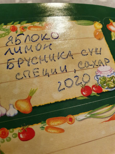 полезная книжечка с минимальной подборкой популярных солений и,конечно, наклейки, на которых можно написать название, год и даже уместится минимальный рецепт (и прочие дополнительные пометки), особенно если любите экспериментировать и сравнивать полученные вкусности.