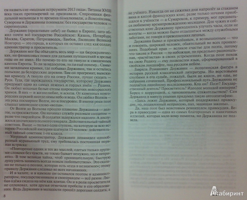 Многогранная личность Гаврилы Романовича Державина – певца Века Просвещения, кумира Пушкина, государственного деятеля потрясает своим масштабом, как пишет автор - «исполинской фигурой» и определенно заслуживает изучения подробной биографии тем более в таком прекрасном исполнении.