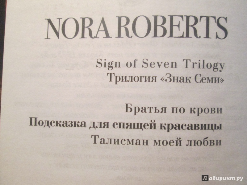 Книга является одной из ступеней трилогии "Знак семи ", все части которой изданы "Эксмо" в серии Мировой мега-бестселлер. Отсюда серийное - стандартное для всей трилогии Робертс - стилистическое решение обложки и оформление издания.
