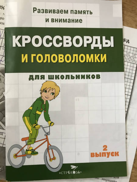 Небольшая книжечка, удобно взять в дорогу, в школу на переменку и тд. В книжке представлены различные виды кроссвордов, есть задачка со спичками, лабиринт, поиск отличий и многое другое. В конце есть ответы. Бумага тонкая, сероватая, печать хорошая. За такие деньги отличная книжечка!