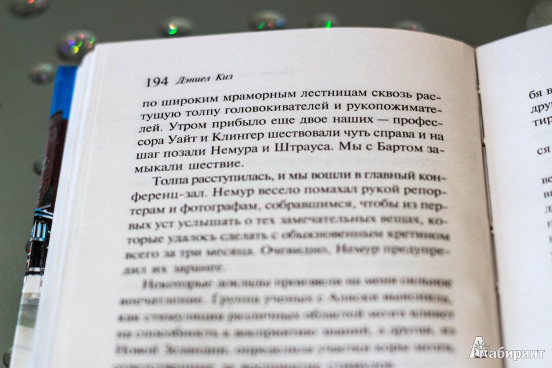 История ведётся от первого лица, Чарли от рождения умственно отсталый, ему очень хочется поумнеть, чтобы его любили. Буквально после нескольких страниц я забыла, о том, что это художественный вымысе...