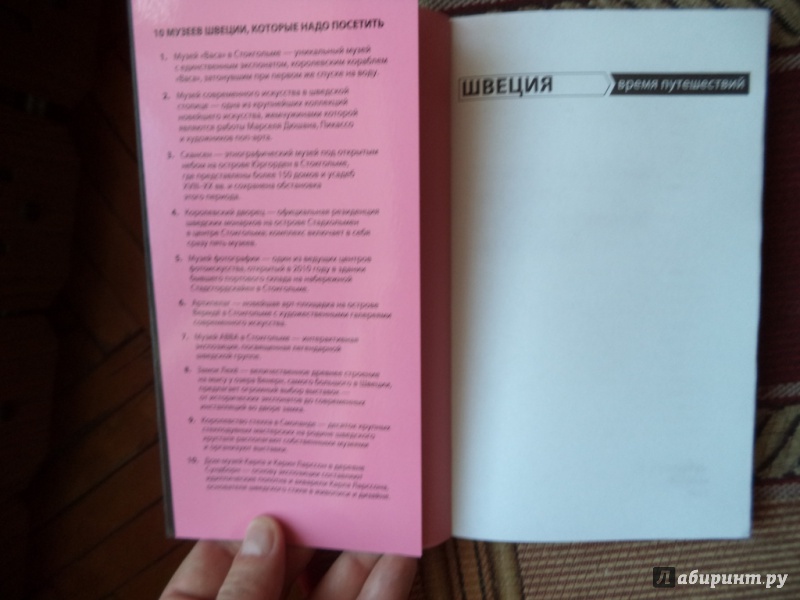 Книга написана простым и понятным языком, читается легко и непринужденно. По ходу повествования автор дает советы и рассказывает как лучше добраться до тех или иных мест. Обложка раскладывается с двух сторон. На мой взгляд крайне удачное издание и для тех, кто хочет узнать что-то о Швеции и в качестве путеводителя.