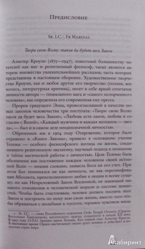 Алистер Кроули (1875-1947), известный большинству читателей как маг и религиозный философ, также является автором множества увлекательнейших рассказов, часть из которых представлена в настоящем сборнике. В некоторых рассказах есть автобиографические элементы, имеющие отношение к детству Кроули, к его альпинистским упражнениям и к неудачному первому браку. Другие представляют собой автобиографическую сатиру или аллегории духовного плана. Себя самого он видит то буддой, то египетским жрецом, то китайским даосским учителем. Достоинство рассказов Алистера Кроули не исчерпывается тем, что они помогают лучше понять мировоззрение и сложный внутренний мир этого яркого и неоднозначного человека, его отношения с окружающими. Это увлекательное чтение также является прекрасным образцом британской художественной прозы начала XX века.