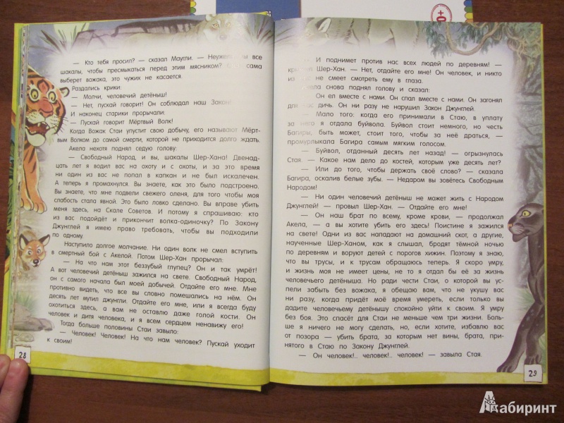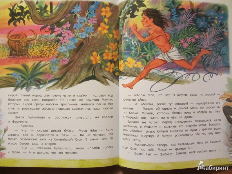 Сыну в 3 классе на лето задали читать "Маугли". Понимая, что повесть объёмная, стала искать книгу с картинками, чтобы прочитал до конца. Я не ошиблась с выбором! Качество данной книги замечательное! Ребёнок прочитал на "одном дыхании" и теперь это его любимое произведение. Рекомендую!