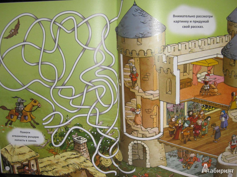 Замечательная книжка-искалка. С удовольствием листаем. Картинки яркие. Ребёнок с интересом разглядывает все детали, интересуется жизнью рыцарей.
