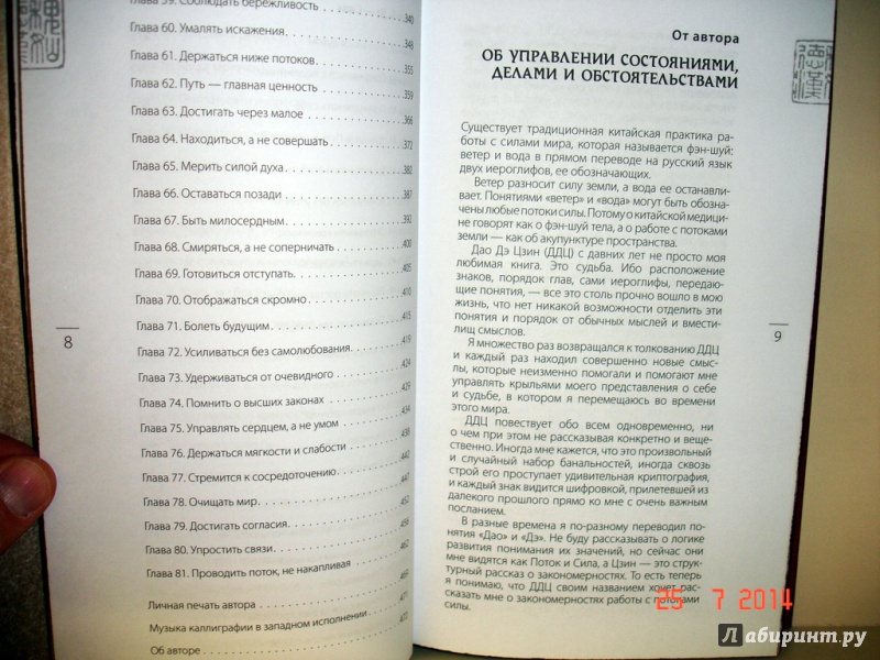 Я очень жалею о приобретении этой книги. Зато, теперь я буду более внимательна к тому что несу в дом. Данный опус имеет такое же отношение к произведению Лао Цзы, как свежие яблоки к пережеванному и выплюнутому кем-то яблочному пирогу.