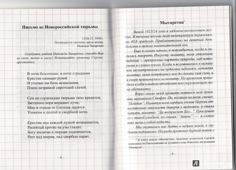 Воспоминания монахини Сергии, посвятившей свою жизнь служению Богу в самые грозные годы ХХ века, - живое свидетельство о подвиге и святом исповедничестве монашествующих последних времен. Глубок и ценен великий жизненный опыт монахини Сергии - опыт стояния за истину Святого Православия. В книгу вошли "Мытарства", виденные монахиней Сергией, и записанные по благословению ее духовного отца. Во второй части книги помещен "Рассказ о мытарствах преподобной Феодоры Цареградской", перекликающийся с мытарствами, выпавшими на долю монахини Сергии. Данная книга, раскрывающая всю низость греха и тяжесть наказания за каждое, казалось бы, незначительное согрешение, возбуждает в читателе ревность в служении Богу и боязнь преступить даже малейшую Заповедь, ведь по слову Апостола: "Кто соблюдает весь Закон и согрешит в одном чем-нибудь, тот становится виновным во всем". (Иак 2:10).