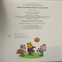 Книжка о том, как зверята собираются в школу. Страницы плотные, обрезаны лесенкой. Обложка твёрдая. Качество печати не очень - краска отпечаталась на соседние страницы. Наша книжка к тому же вся залапана грязными пальцами.