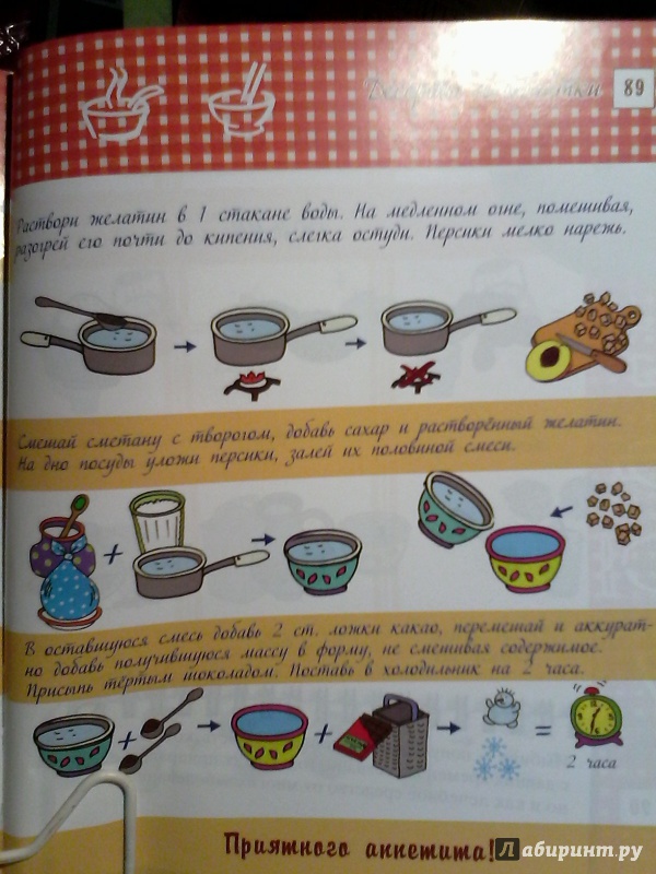Мягкая обложка, книга приятная. Главное, что адресату-ребёнку все очень понятно: самостоятельно приготовить сможет!