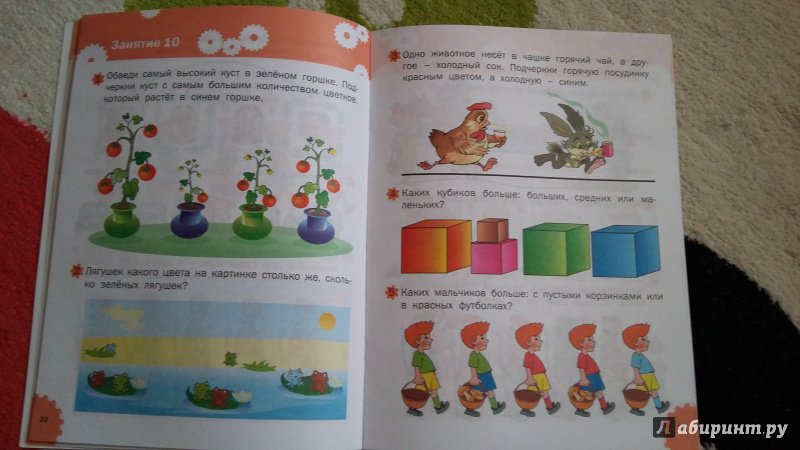 Единственное, что не очень нравится, так это по 3 задания на странице. Для ребёнка 3х лет необходимо прикрывать листом остальные задачи, чтобы внимание фиксировалось на одном задании.