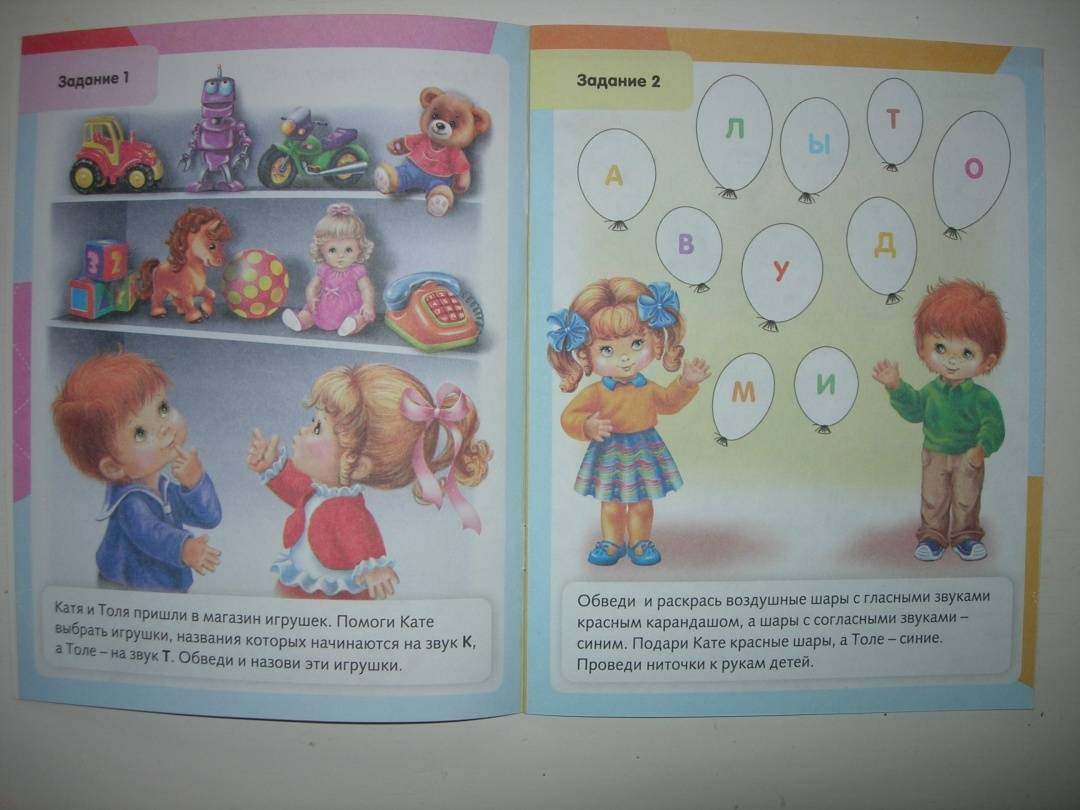 Книга для детей старшего дошкольного возраста. Включает в себя (исходя из предисловия) задания на формирование умений: выделять звук в начале, середине, в конце слова; раскладывать слово на звуки, определять их последовательность и количество; составлять из звуков слоги, из слогов слова.
