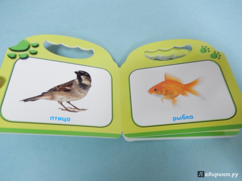 Красивые и понятные фотографии животных в небольшом, карманном формате. Удобно брать с собой в поликлинику или в дорогу (малыш сможет нести ее сам, как сумочку). На изображении нет ничего лишнего - идеально для первичного знакомства малыша с животными. Страницы - глянцевый, плотный картон примерно 1,5 мм толщиной.