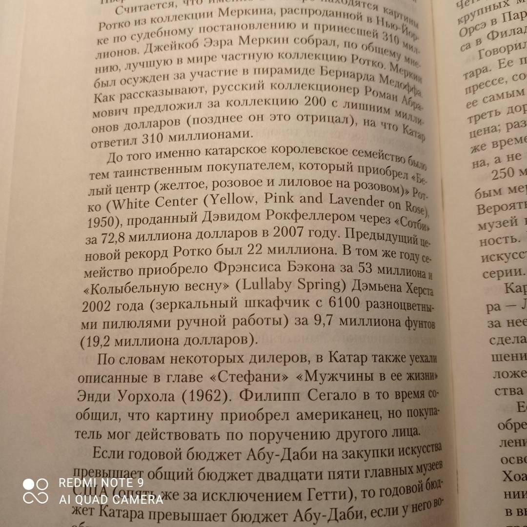 Как пишет сам автор, он задумывал книгу не как справочник, а как путешествие по миру современного искусства. Автор пишет о современных художниках, об аукционах, о коллекционерах. Много интересных деталей и цифр, есть немного фотографий (автору не разрешили публиковать всё, что он хотел). Полезная книга для расширения ...