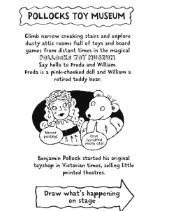 Книга по возрасту скорее подойдет подросткам лет 12-13 (подойдет и для детей помладше, но с хорошим уровнем владения языком), а вот взрослым будет не очень интересно. В книге есть любопытные факты про музеи и исторические места Лондона. Почти на каждом развороте есть задания вроде: нарисуйте игрушку, которую вы бы хот...