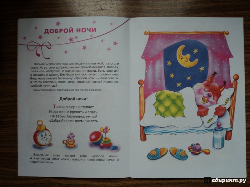 Наша книжка напомнит ребенку, какие вежливые слова есть в нашем обиходе. В ней - два вида занятий с малышом: рассматривание иллюстрации, беседа по ней с помощью текстов-подсказок на левой страничке и чтение стихотворения и его обсуждение.