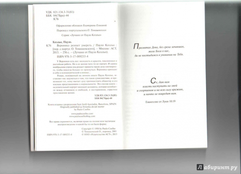 Книга замечательная, как и другие книги П. Коэльо. Заставляет задуматься и заглянуть в уголки своей души. Читалась мною на одном дыхании.