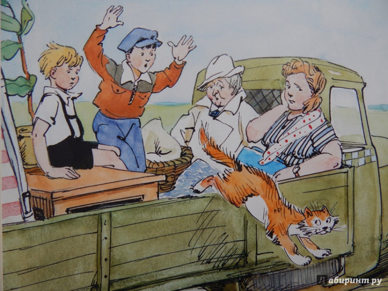 С. Маршак сочинил увлекательную историю про кота, сбежавшего из грузовика по дороге на дачу. Вся семья - бабушка, мама, братья Сережа и Петя, а также присоединившийся к ним шофёр отправляются на поиски беглеца. Каждый находит кота, подходящего по размерам и окраске. Когда вся компания с котами на руках возвращается к грузовику, оказывается, что виновник суматохи самостоятельно вернулся и крепко спит в своей корзине "…на грузовой машине. / Он прогулялся по дворам, / На завтрак съел лягушку / И поспешил вернуться сам / На мягкую подушку".