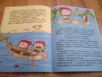 Книжка большого формата (примерно А4) с картонной обложкой, плотными страницами. Оформлена ярко и интересно. Содержит две истории про девочку-пиратку и её попугая. Истории с определенной долей юмора, дети слушали их с интересом. Шрифт удобный для чтения, но для самого первого самостоятельного чтения книга не подходит ...