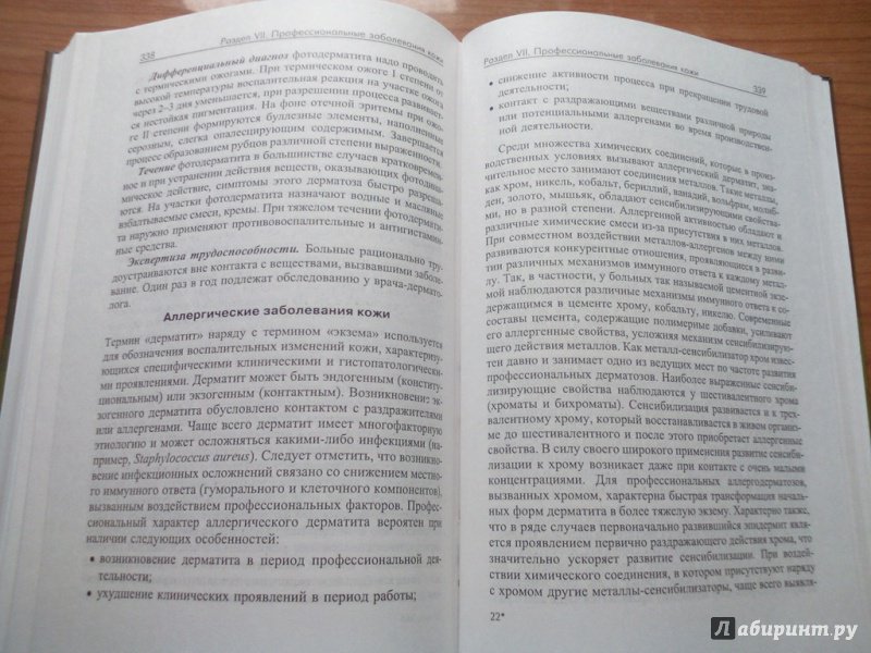 Хороший учебник, подойдет для студентов и врачей общей практики. Иллюстраций нет, даже черно-белых. Твердый переплет, белый тонковатый офсет. Текст понятный, достаточный для ознакомления с темой, для подготовки к занятиям по профессиональным болезням на 4 курсе. Рекомендую.