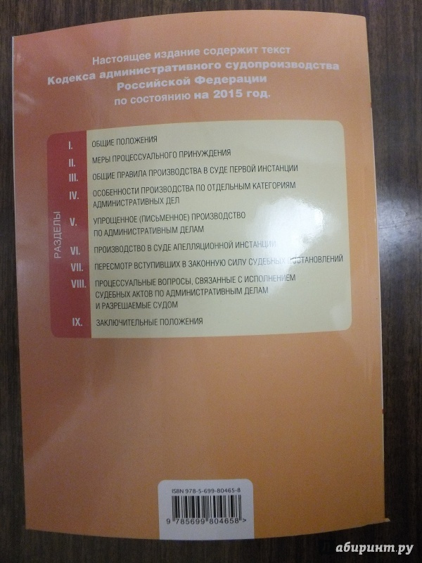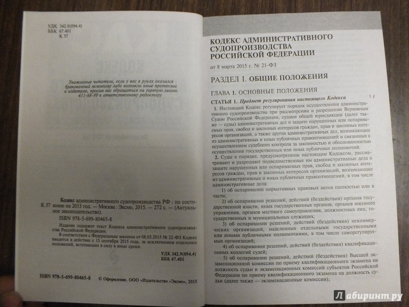 Кодекс административного судопроизводства Российской Федерации по состоянию на 2015 год