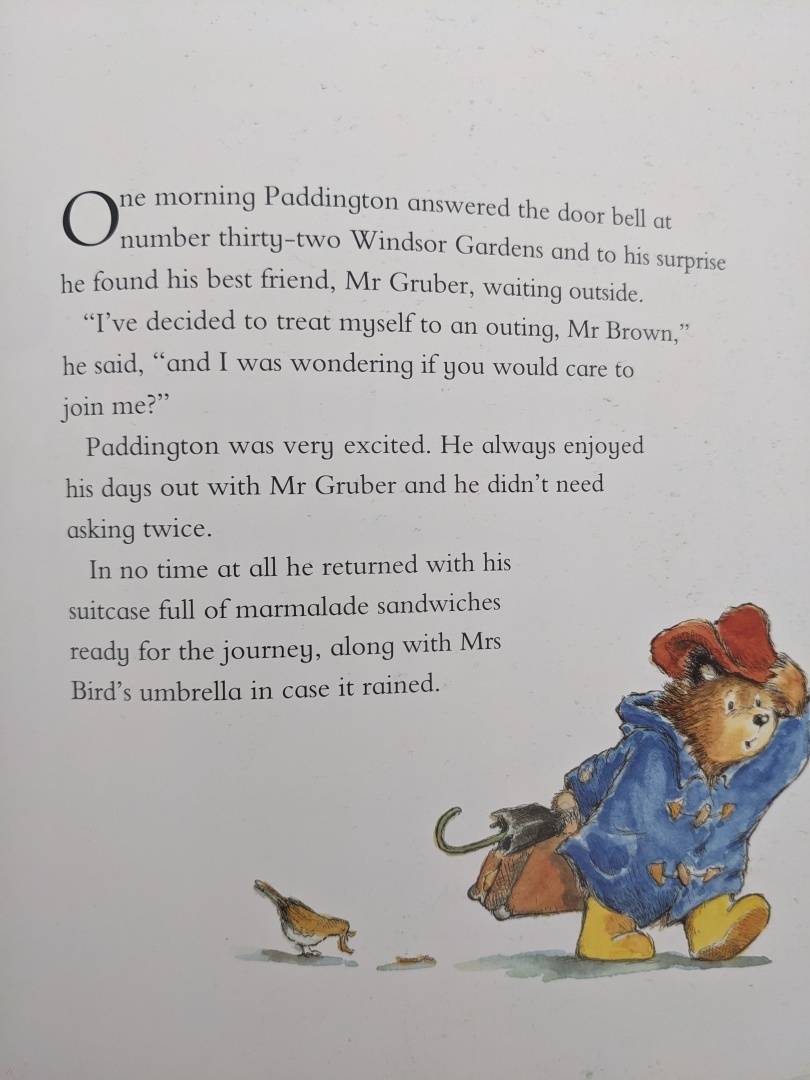 The classic bear from Darkest Peru, who was found on Paddington Station, returns for a day of London sightseeing in this hilarious picture book! With his suitcase packed full of marmalade sandwiches and Mrs Bird`s umbrella (in case it rains), Paddington sets out for a day of sightseeing with his fri
