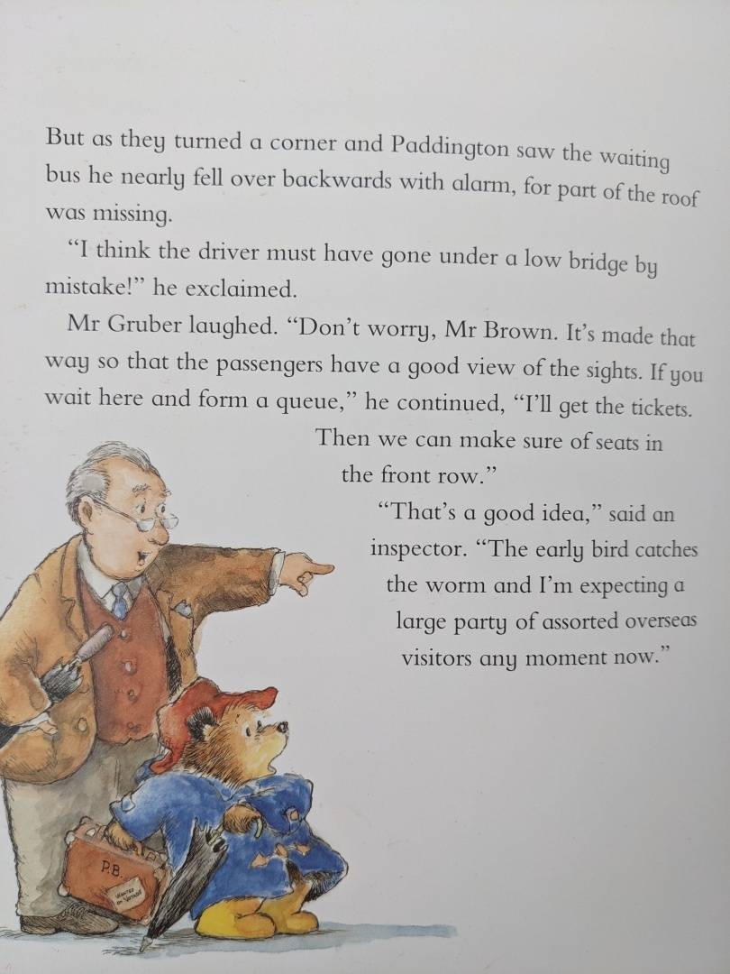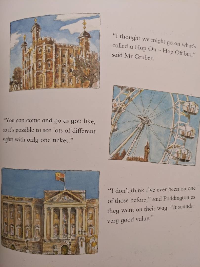 The classic bear from Darkest Peru, who was found on Paddington Station, returns for a day of London sightseeing in this hilarious picture book! With his suitcase packed full of marmalade sandwiches and Mrs Bird`s umbrella (in case it rains), Paddington sets out for a day of sightseeing with his friend, Mr Gruber. How can he know that the tourists will think he`s their tour guide? And how is he to guess that they will follow him everywhere?