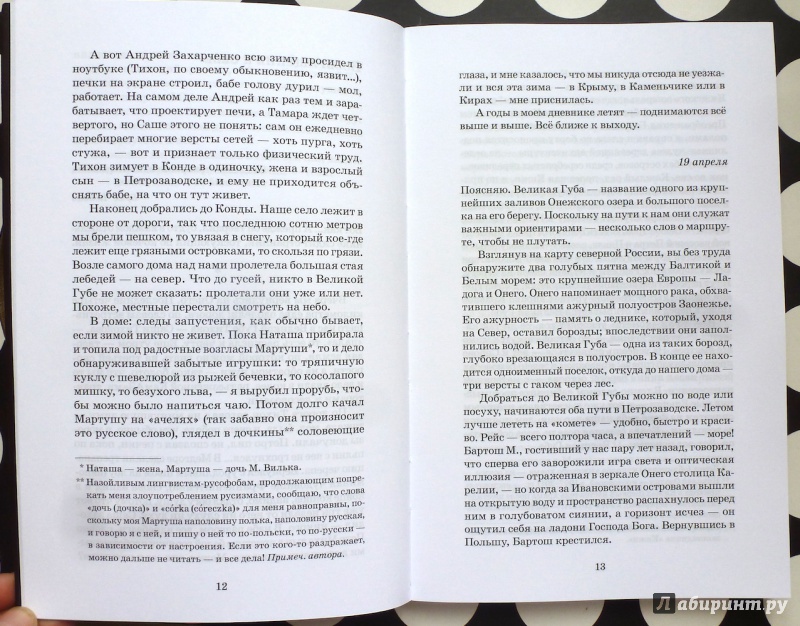 Мариуш Вильк (род. 1955) - польский журналист и писатель, соратник Леха Валенсы, один из лидеров "Солидарности", мыслитель, "человек-дорога". В 1989 году уехал из Польши, работал в России в качестве журналиста (был очевидцем московского путча и абхазской войны), несколько лет прожил на Соловках, кочевал по Кольскому полуострову. В настоящее время живет попеременно в Петрозаводске и в карельской деревне. Книги Мариуша Вилька начали выходить в России с 2006 года ("Волчий блокнот" 2006; "Волок" 2008; "Тропами северного оленя" 2010; "Дом над Онего" 2012; "Путем дикого гуся" 2014).