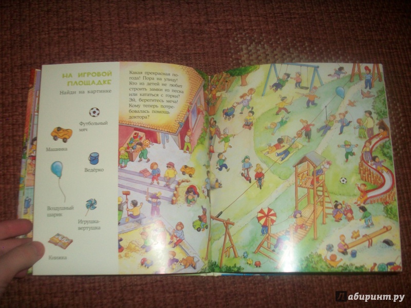 Книжка неплохая,удобно держать в руках не объемная, моему ребенку понравилась.Картинки понятные,интересные, отражают жизнь детей.Дороговата конечно,текста совсем нет,выглядит как толсты хороший журнал,только в толстом переплете.