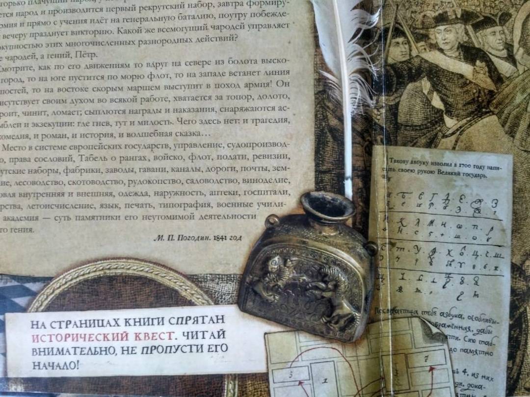 Об императоре – императорская книга. Ну очень красивая и качественная. Купили в подарок и не прогадали. Ребенок фанатеет и мы вместе с ним. Текст разбит на небольшие фрагменты, поэтому нет ощущения загруженности, а количество взаимодействий – мама! Бояр переодень, квест пройди, ботик собери и тд – даже удивительно как...