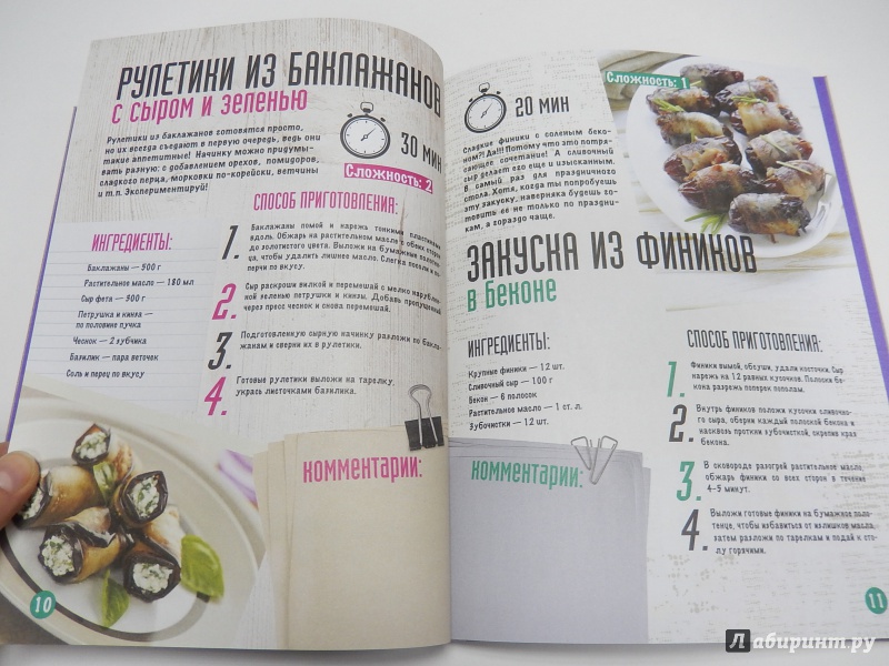 Блюда очень аппетитные, изображения яркие и четкие, на голодный желудок лучше не листать. Оформление хорошее: обложка из плотного картона, плотные страницы с цветными иллюстрациями, есть поле для комментариев около или под рецептом. Ингредиенты в большинстве своем простые. Есть страницы в альбомной ориентации, как ...